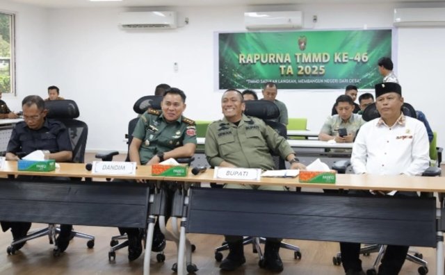 Hadiri Video Conference (Vidcon) Rapat Paripurna (Rapurna) Tentara Manunggal Membangun Desa (TMMD) ke-46 Tahun Anggaran 2025 digelar di Kantor HRTM PT Vale Indonesia, Sorowako, Kecamatan Nuha, yang Dibuka secara resmi oleh Asisten Teritorial Kepala Staf Angkatan Darat (Aster KSAD) Mayor Jenderal TNI Rachmad Zulkarnaen. Kamis (04/12/2025).
